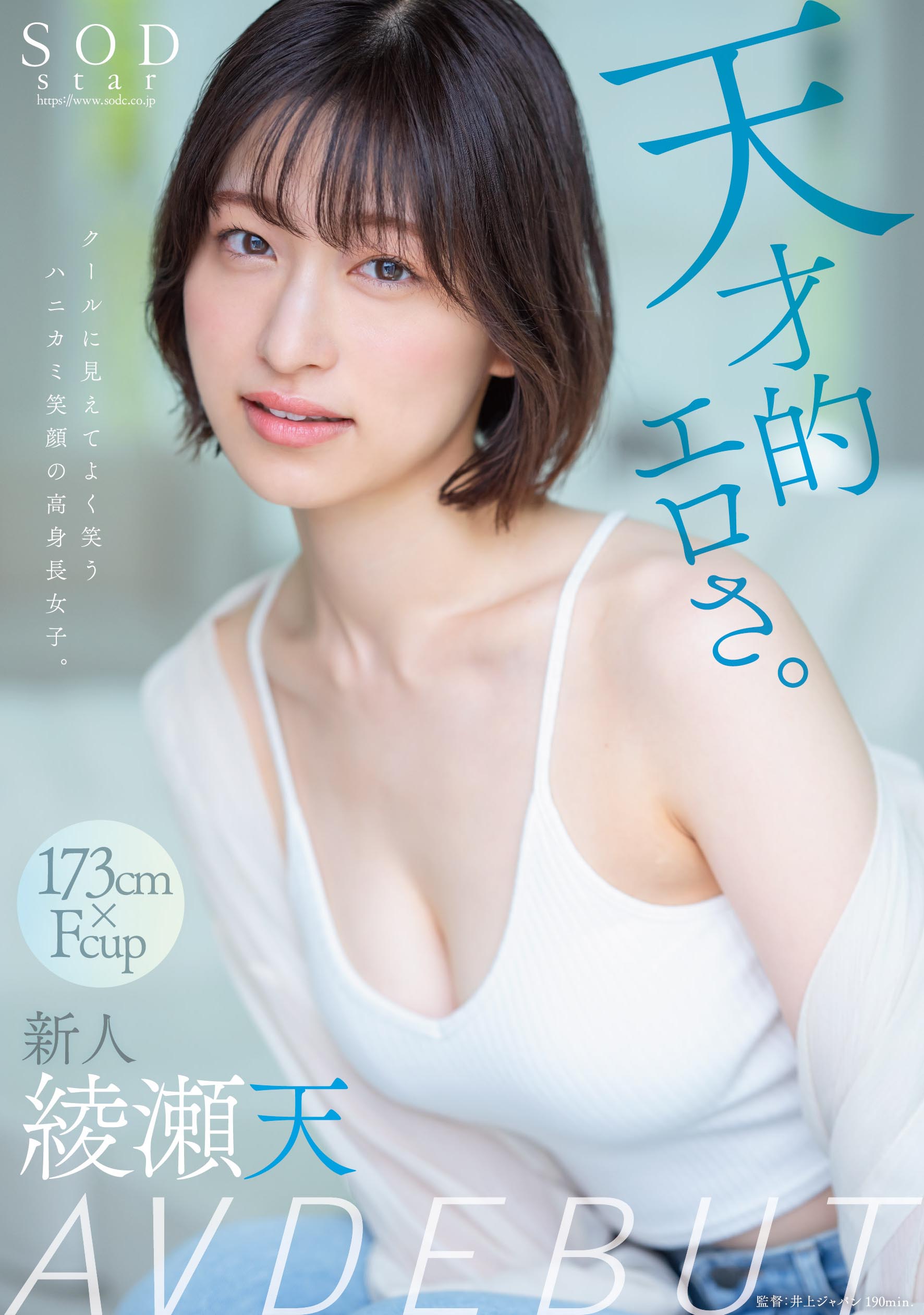 「『SODstar』から昨年12月にデビューした綾瀬天です。2作目では私がやりたいエッチなことが実現しているので、ぜひ作品を観て、いっぱいヌイてください! そしてSNSもフォローしてください!」
