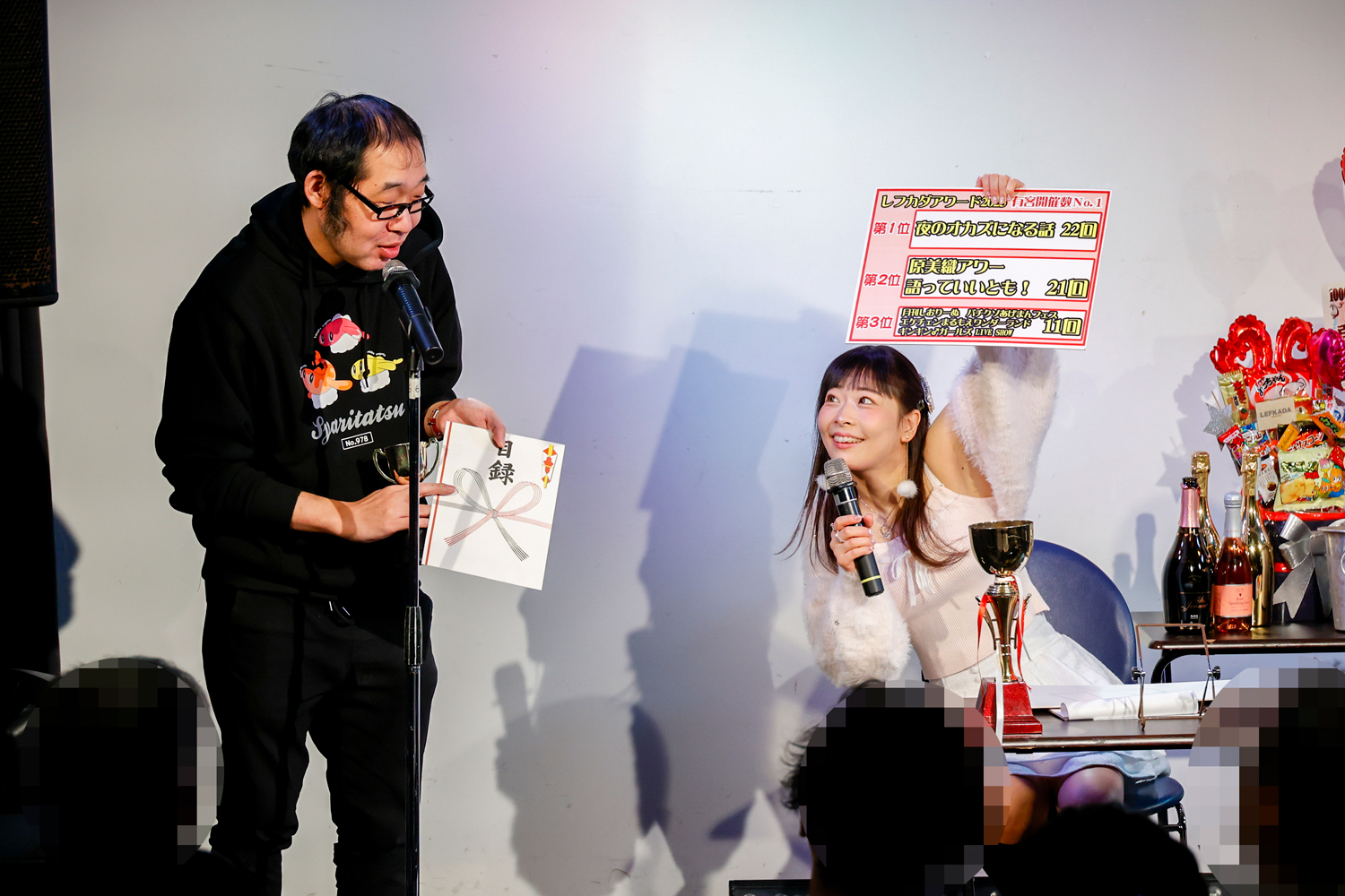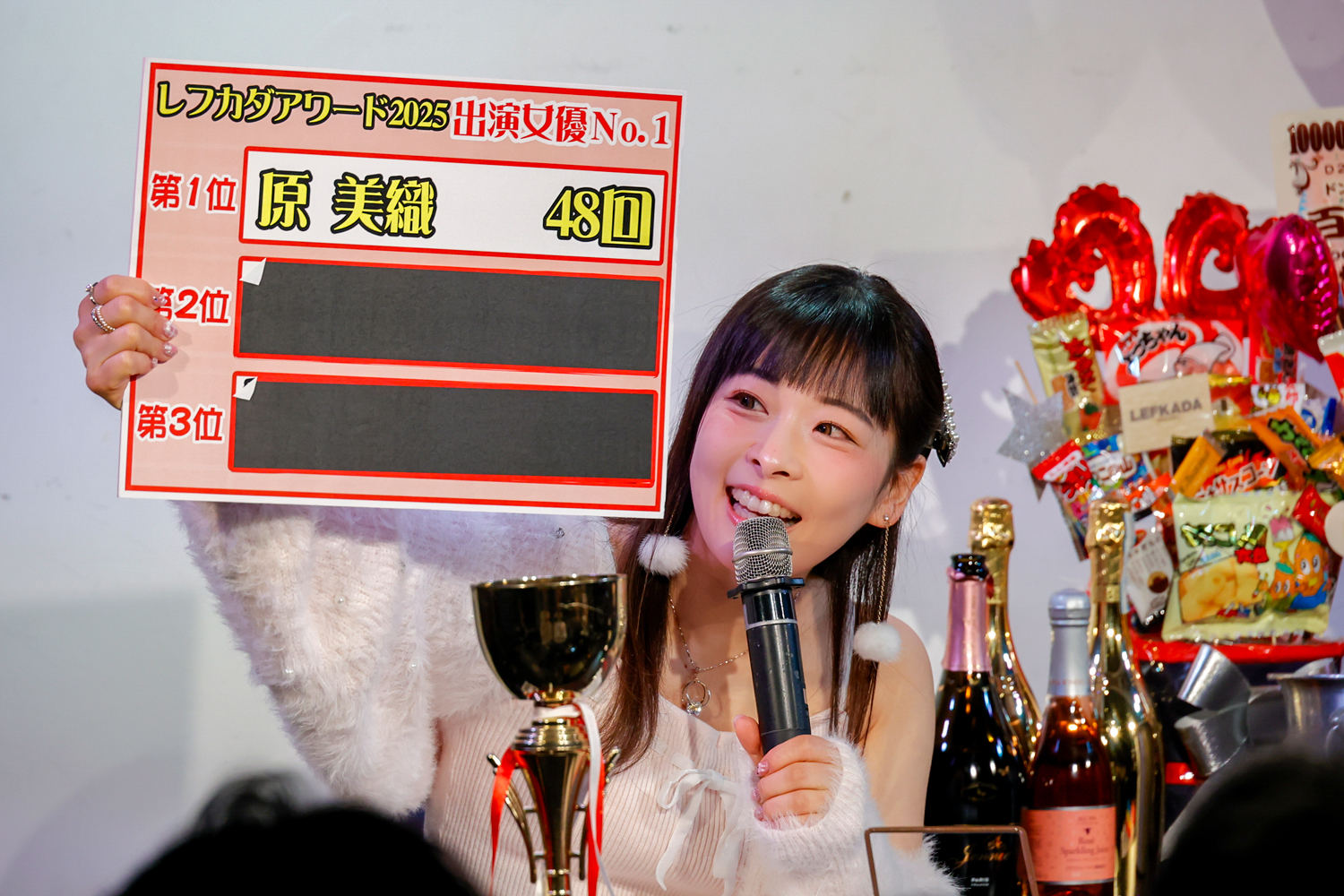 続いて「利益ナンバーワン」は、2月4日開催の「原美織アワー 語っていいとも!~64回目のゲストは永澤ゆきのさん、樋口みつはさん~」が受賞。「自分が企画したイベントがレフカダ新宿の利益になってうれしい!」と語る美織ちゃん。その姿は、出演者というよりも、もはや運営側の安心感すら漂わせていました(笑)。